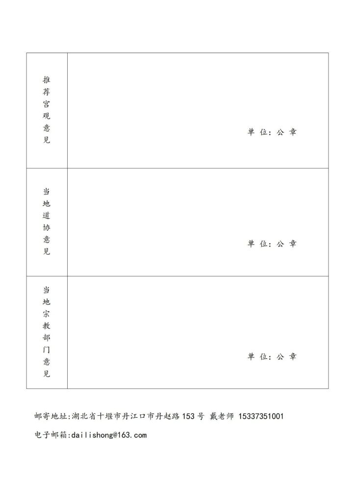 3、通信地址:湖北省丹江口市丹赵路153号武当山道教学院